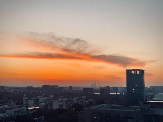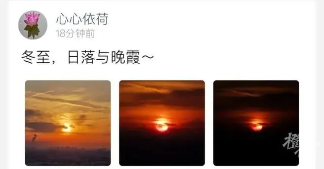 就在刚刚的下班路上,橙友们拍下了冬至的落日和晚霞: