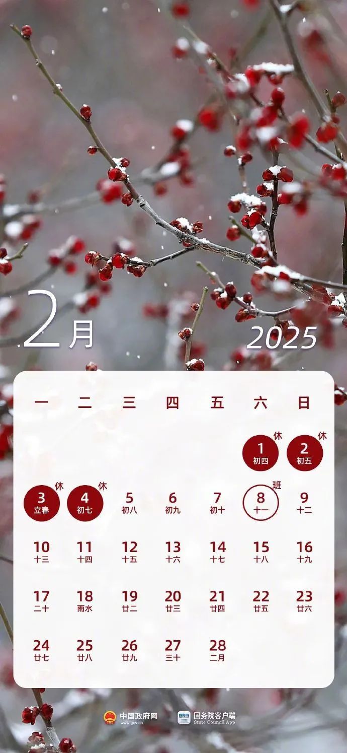 今天(2月4日)是初七。春节长假进入倒计时、不要忘记这周上班时间调整。根据放假安排,本周休2天,上4天,再休1天。注意,本周六(2月8日)要上班!