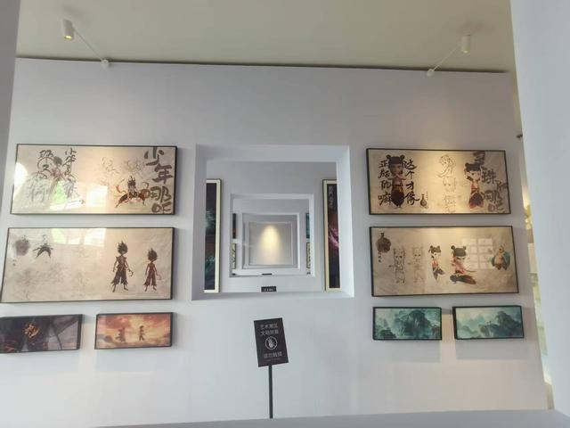 在现场,还有一个有趣的展柜,里面摆放着3-5岁孩子创作的哪吒和敖丙的造型,这些造型是在电影中太乙真人为哪吒和敖丙重塑肉身时的形象。展柜旁边的墙壁上挂着60多幅饺子导演亲手绘制的海报原图,这些都是他挑选出的比较不错的原图,首次在展览中亮相。此外,展览特别打造了影音体验区,观众可以了解到电影“陈塘关大战”中数万海底妖兽压境陈塘关、千万锁链空间交错等经典片段的幕后制作故事,沉浸式感受电影所传递的“不破不立”的硬核精神。